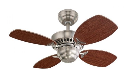 This 28" Colony II ceiling fan comes in a brushed steel finish with four mahogany finish blades. Add style and a cooling breeze with this graceful fixture from Monte Carlo. (MAP)